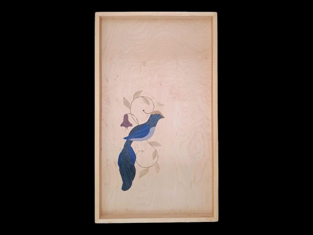 In die Finest Selection kommen nur Furnierbilder mit geschwungene Linien und/oder einer hohen Anzahl von Einzelelementen. Zur Nutzung als Tablett würden wir sie nicht unbedingt empfehlen – dazu steckt zu viel Aufwand und Liebe drin.
